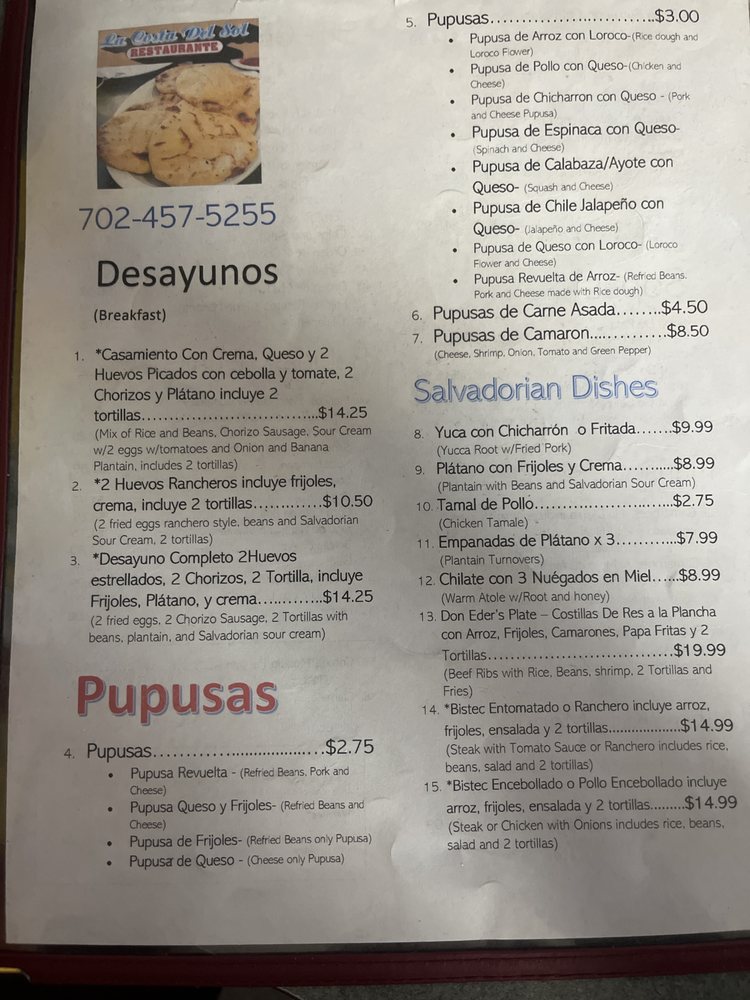La Costa Del Sol, a beloved Salvadoran restaurant in Las Vegas, has captured the hearts of many food enthusiasts. With a menu packed full of authentic Salvadoran delights, this restaurant offers a variety of options suitable for vegetarians and meat lovers alike. Customers rave about the flavorful pupusas and the exceptional service provided by the friendly and attentive staff. The vibrant atmosphere, complete with great music and outdoor seating, enhances the dining experience, making it perfect for casual gatherings and family meals. The commitment to quality is evident in every dish, as they are all freshly prepared to order. La Costa Del Sol truly stands out for its exquisite flavors, making it a must-visit destination for those craving a taste of Salvadoran cuisine.